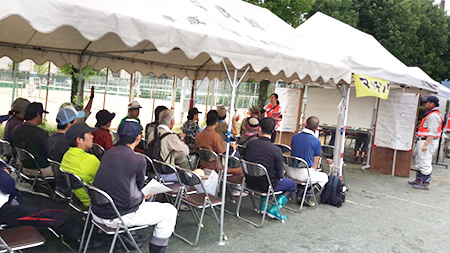 ボランティアへのオリエンテーション、活動マッチングの様子(2017年九州北部豪雨災害 朝倉市災害ボランティアセンター)